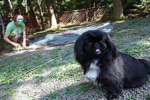 | 我が家のペキニーズ3匹のくぅー&ふく&ロンちゃんはキャンプ大好き!パパたちがキャンプの準備し始めると、もう〜ワクワクそわそわ。連れていって〜っと毎回大騒ぎだ。もちろん、車の中でも超ご機嫌。でも、帰路は毎度菜優真優ちゃんの枕役?もう重いよぉ〜と逃げるのに大変。 |
