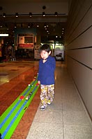 ここの緑の地下鉄電車は、ホント本物の醍醐味を味わえます。運転席について、スタート!するとちゃんとタイヤが動き始めて(もちろん本体は止まってるけど)、ブレーキで止まるって感じ!だから速度計見ながら運転さっ!もちろん初めての子には、横におじさんがついて教えてくれるから安心さっ。サービス満点!この電車では、他にも自動ドアの開閉も自分でさせてくれるんだ。