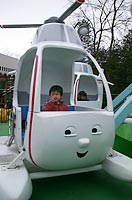 又、ジェットコースターに初挑戦!! 子供用なので何と15秒くらいで終わってしまう可愛いジェットコースタ−なんだけど、やはり大人気。2回も乗っちゃった。でも、1回目はちょっとビビっちゃいました。ママはフジヤマやドドンパとか言う恐ろしいジェットコースターに乗りたいって大騒ぎしてたけど、強風のため運転開始が遅れたので、長蛇の列。可哀想だけど断念となりました。パパはホントほっとしてました。又来たいヨォ〜。
