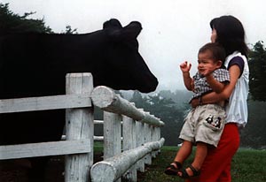 もちろんメインは、山羊さんや牛さんたちだ。仲良し広場の山羊さんとかは全然平気で可愛かったけど、やっぱりドデかい牛さんにはギブアップ。怖〜い。すごい迫力だよぉ〜。でも、久しぶりに出会った幼なじみで楽しめたのは良い思い出になりそうです。あれだけ仲良かったみどり組も、ぼくんちはじめ引越でバラバラに・・・だから会えるのは年に1〜2度。だから今回の旅行はすごく楽しみにしてたのだ。あぁ〜面白かった。又どこに一緒で行きたいねぇ〜! |