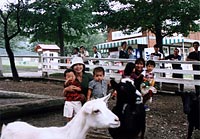 | ホテルの周辺でいろいろ遊んだあとは、一路南下して、関越トンネルこえて新潟から群馬県へ。渋川伊香保ICで降りて、伊香保温泉街のすぐ近くのグリーン牧場へ。ここは人気の伊香保温泉の近くということもあるけど、人気の観光牧場です。ちびっ子用の乗り物もいろいろあるんだ。楽しいぞ! | ||