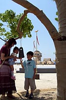 吉野ヶ里自慢の物見櫓も高さがあって立派です。当時はここから壕と城柵で守られたこの大集落の見張りがされていたのでしょうね。パパなんか上まで上がるので息があがってるもんね。駄目だこりゃ。でも、その広さに改めて驚かされます。吉野ヶ里遺跡ってすごいやぁ!一番先には「北墳丘墓、龜棺墓列」があらわます。ここは暦代の王たちが眠っているそうです。その手前には、北部九州のみの特色としてみられる龜棺埋葬エリアがあります。これもすごい規模だったらしく、約600mに渡り2列に埋葬されているそうです。本来は広大な歴史公園。他にも弥生んピック(弥生時代の弓矢や槍投げ等の体験)、ミニSL、熱気球体験等ほんといろんなイベントが開催されていたのですが、残念ながらタイムアップ。断念。良太くんがっかりするも、これから今回の旅行のメインイベントがあるため納得して次へ行く事に。 |