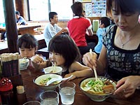 | まずは高速道路にのって一気に北上。目指すはキッズたちに大人気の定番観光スポット「沖縄美ら海水族館」!水族館のある海洋博公園は名護市の先の本部町になる。那覇からは遠く車で1時間半ほどかかる。途中、ランチタイムとなりお腹も減ってきた。ちょうど良く本部町は県内でも有数の人気沖縄そば屋が並ぶエリアだ。ここまで来たら、まずは沖縄そばの代表店「きしもと食堂」へ行かなくては・・・。誰もがご存知創業明治38年の名店だ。そのきしもと食堂に八重岳店がオープンし綺麗でファミリーでも訪れやすくなった。 | ||