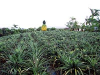 最後まで1人パイナップル食べ放題に挑戦した菜優ちゃん。さすがにお腹いっぱいって感じでした。他にもパイナップルやシークゥーサー関連の加工品がいっぱい。ケーキ、カステラ、饅頭、パイ等々どれも試食ができるのでホント満腹になってしまう。これは違った意味で中々良いテーマパークだ。最後にその中でも1番人気と聞いた「パインボール」をゲット。要はパインシュークリームだ。実はこれが結構美味しいらしい。お夜食用にテイクアウト。楽しみだぁ。最後にパイナップル畑を散策。 |